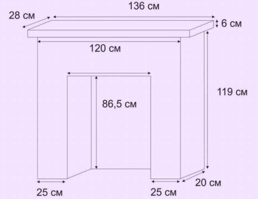 Примерная схема фальш-камина из гипсокартона с размерами. Из гипсокартона планируется сделать фальш-камин полуфункциональный, чтобы служил одновременно украшением интерьера и полочкой для мелочей.