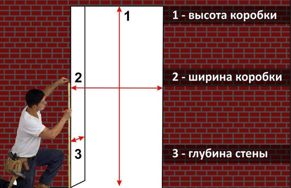 Важно помнить, что ширина проема не является шириной створки, ведь в проходе еще устанавливается и короб. Вот между его вертикалями и необходимо производить измерения