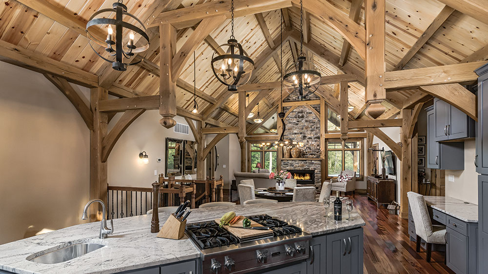 В отличие от большинства современных деревянных домов, фермы с деревянным каркасом часто выставляются напоказ, усиливая ощущение пространства и объема внутри. Потолок с деревянным каркасом может быть на линии крыши, а не привязан к основанию нижней балки фермы, и благодаря этой гибкости отдельные комнаты могут иметь различную высоту потолка. Тем не менее, новообретенная высота потолка и архитектурный интерес деревянной фермы часто означают, что требуется инженер, чтобы гарантировать, что эти красивые открытые фермы выдержат нагрузку крыши.