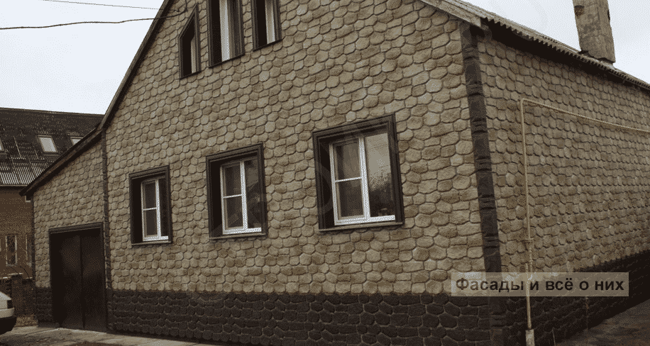 Такая отделка используется для обшивки цоколя дома, материал отличается от фасадной продукции размером листа. Ввиду того что этот участок испытывает наибольшую механическую нагрузку, необходимая толщина облицовки значительно возрастает. Продукция выпускается с различной декоративностью, наиболее востребованными являются варианты под камень, кирпич и щепу.