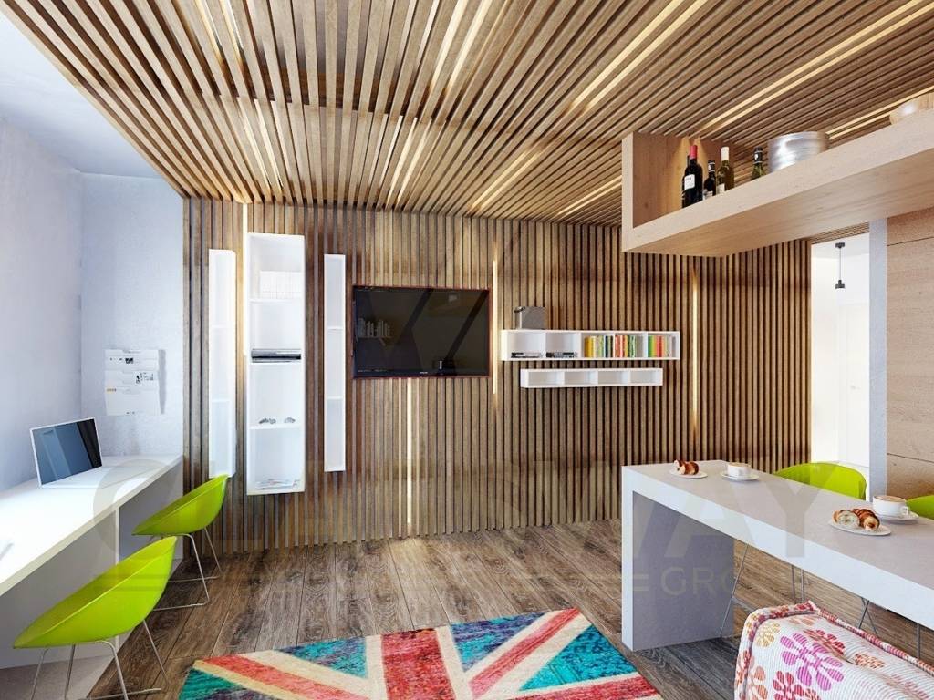 - благодаря богатому выбору цветовых решений и дизайнерских фактур стало возможным создавать разнообразные объемные интерьерные решения, избегая невыразительных плоских форм,