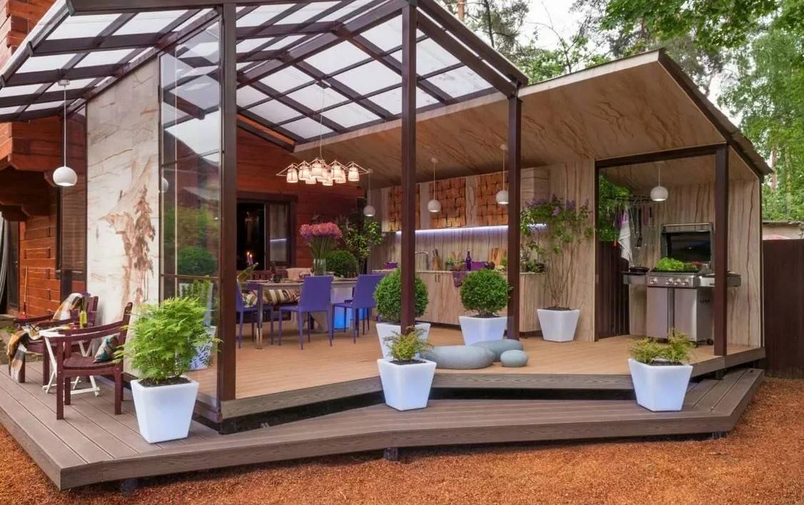 Место на веранде можно использовать разнообразно, устроив там кухню, гостиную или мастерскую. На самом деле существует множество идей, как можно использовать пространство, и вот несколько из них.