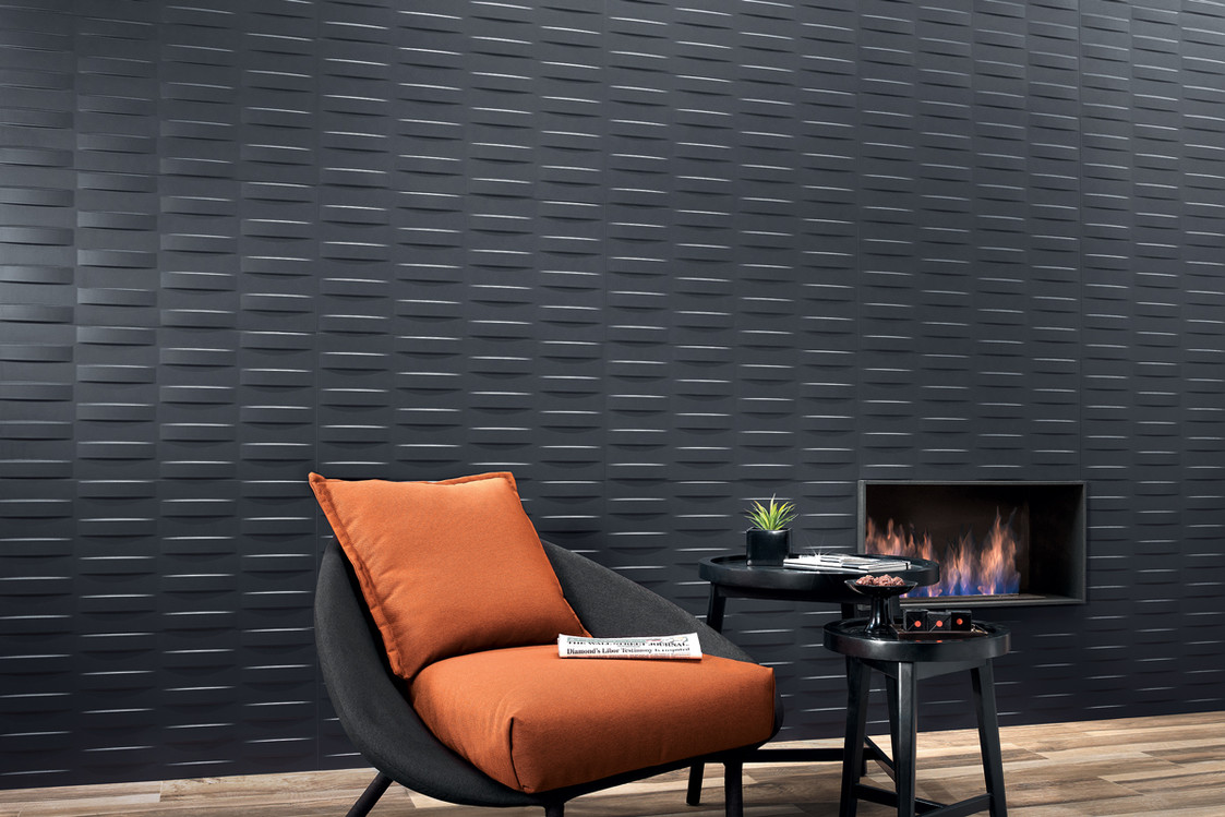 Гладкие варианты при оформлении такого интерьера превратят комнату в больничное помещение, а рельефная плитка придаст дорогой вид, словно на ремонт комнаты были потрачены баснословные деньги. К тому же она помогает визуально расширить пространство за счет обилия фактур и орнаментов.