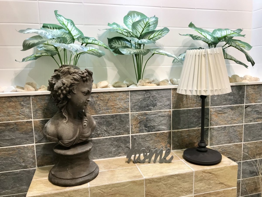 Есть и другая проблема: расположение на 3D плитках наличников и плинтусов также невозможно. Для этого придется справиться со всеми выступающими фрагментами, срезая их. Лучшим решением является использование под стыками и креплениями обычной керамики, оставляя для рельефной декоративную роль, например, панно или вставки.