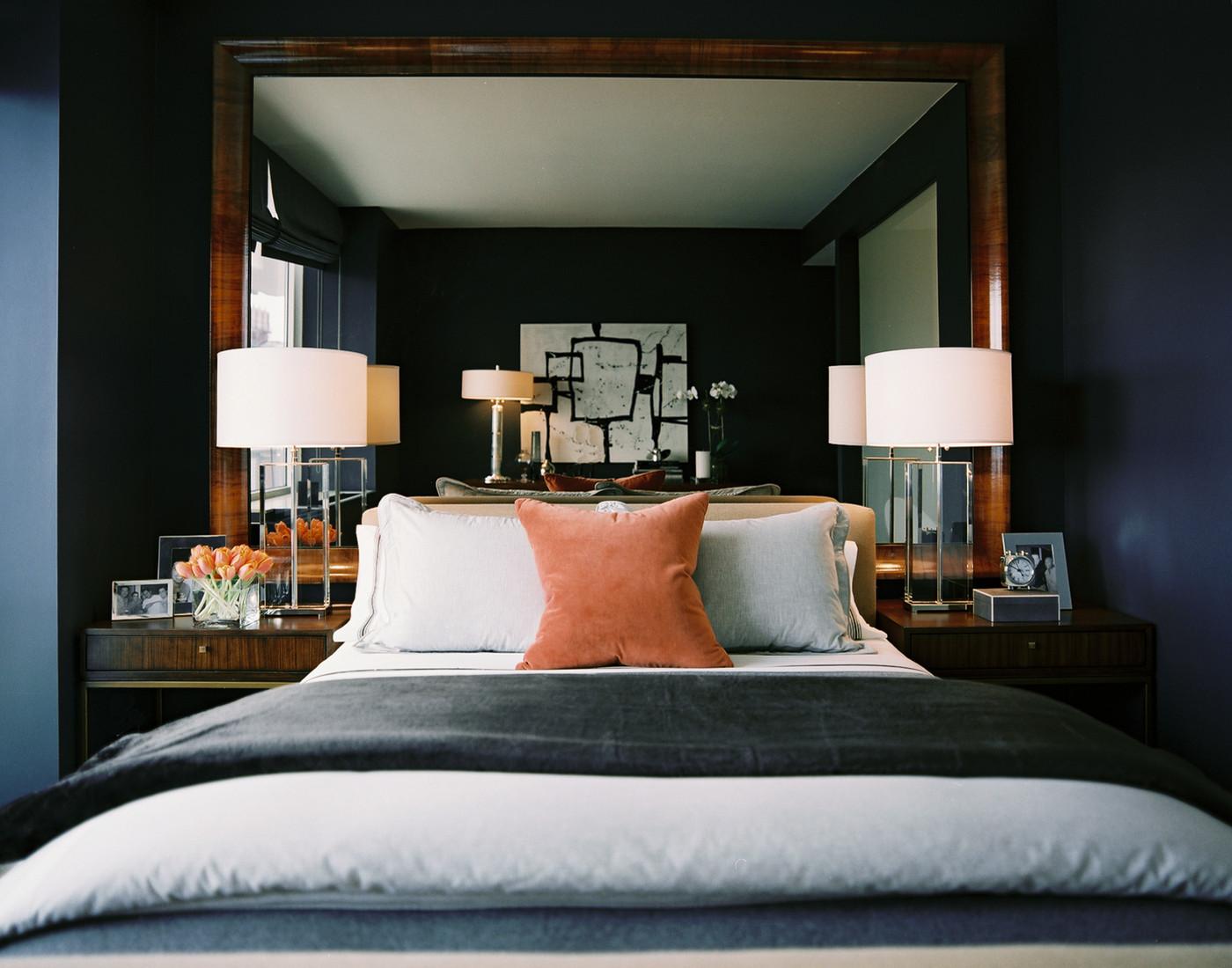 - Размещение зеркал зрительно расширит комнату. Это могут быть зеркала на дверях шкафа, настенные, за изголовьем и при туалетном столике.