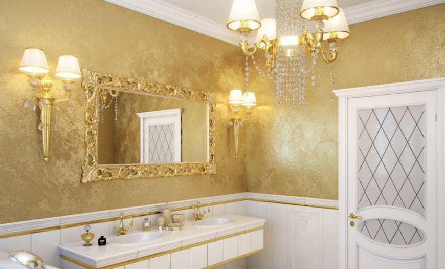 Дорогой дизайн, но необычайно эффектный. Кроме дороговизны и сложности отделочных работ, у него есть еще один недостаток – не для каждого помещения он подойдет – выбирать отделку камнем – мрамором, например, можно только в просторной ванной. Зато здесь можно создать уникальный интерьер в классическом либо другом историческом стилях.