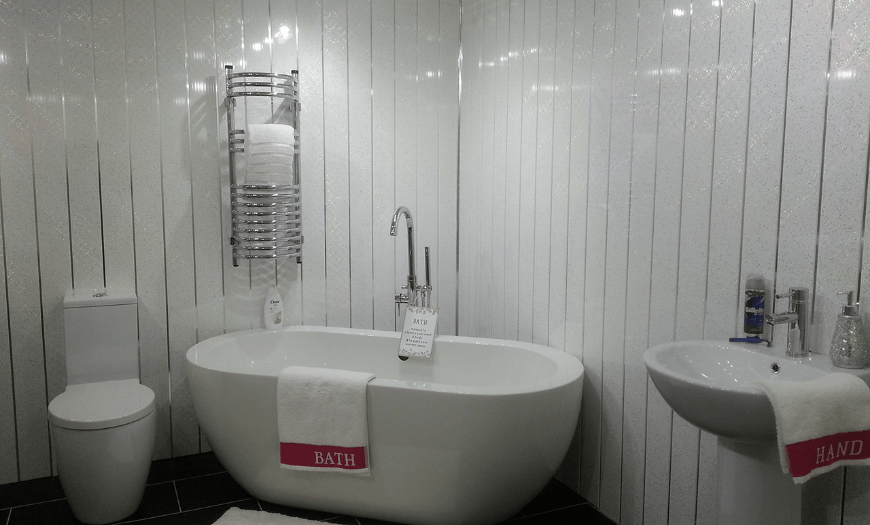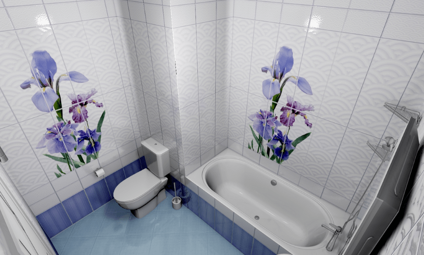 Из-за повышенной влажности помещения единственный вариант панелей, подходящий для отделки совмещенной с туалетом ванной комнаты, – пластиковые. Разнообразие выбора цветов и рисунков, недорогая цена и простота монтажа делают их популярным материалом для оформления санузла.