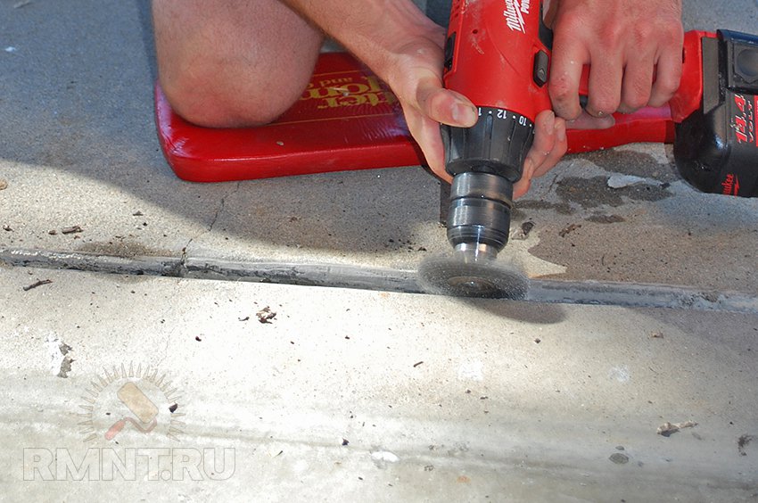 Есть еще один метод устранения трещин. В начале работ трещина пропиливается на 25–50 мм в глубину и на 10–20 мм в ширину. Излишки бетона нужно удалить и продуть трещину от пыли и грязи. Пропил заполняется ремонтной смесью. В том случае, если бетон крошится, стоит использовать более качественную смесь, если он практически не пылит — подойдет и средство подешевле.