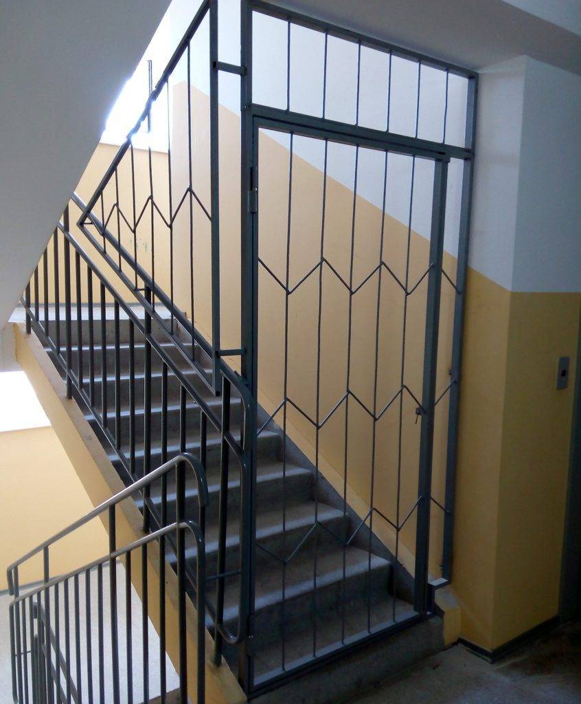 - На лестницах в подъездах, которые ведут на чердак или в подвал. Также стальные тамбурные двери решетки можно использовать в подъезде для защиты панели со счетчиками или любого другого оборудования.