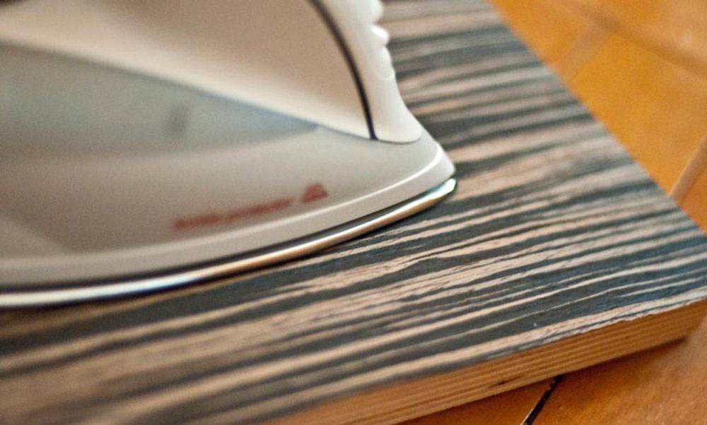 Прогладить поверхность утюгом. Для этого надо взять отрез ткани, намочить, тщательно отжать и положить на 10-15 минут на участок вздутия, чтобы шпон размягчился. Затем включить утюг, выбрать режим среднего или минимального нагрева и прогладить полотно в месте повреждения.