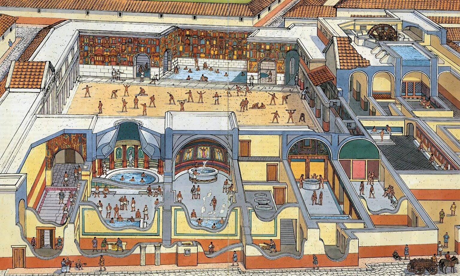Огромные банные комплексы включали комнаты с разными температурными режимами, купальни, места для чтения, отдыха и общения.