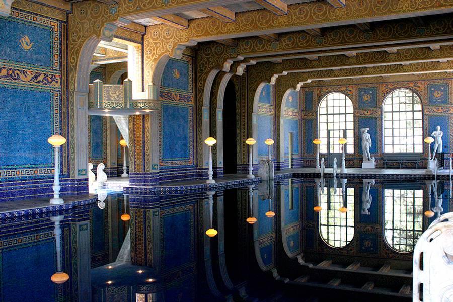 Возле западных и южных стен бани всегда располагали бассейны. Это делалось потому, что с этих сторон дневной свет задерживался в помещениях дольше. Сами бассейны и лежаки, расположенные возле них, были выполнены из мрамора. А стены в комнатах облицовывались живописной мозаикой.