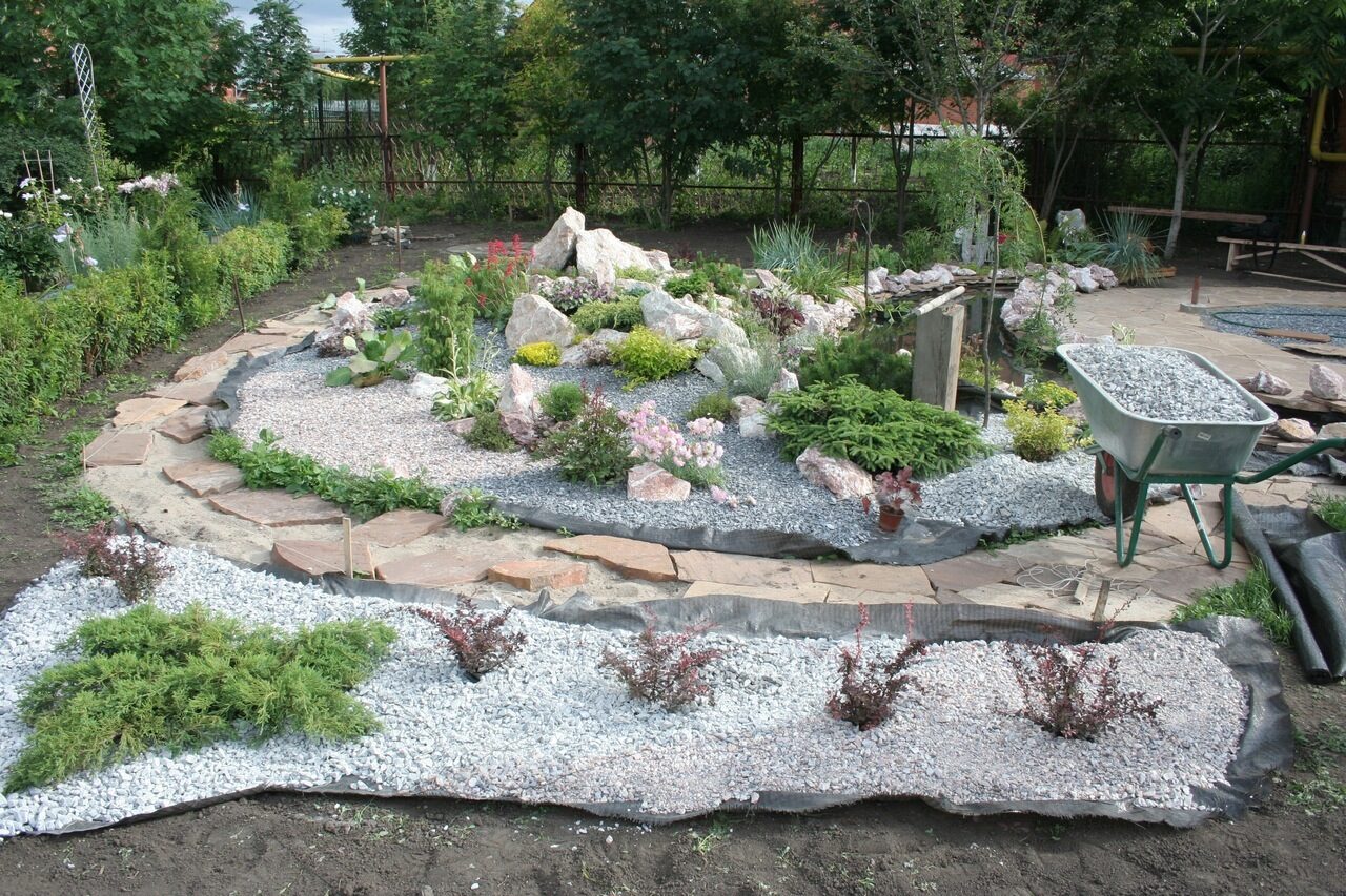 Самая частая проблема при создании рокария на даче – какие камни использовать для отсыпки. Желательно, чтобы они были одного происхождения, поставки, горной породы и одноцветные.
