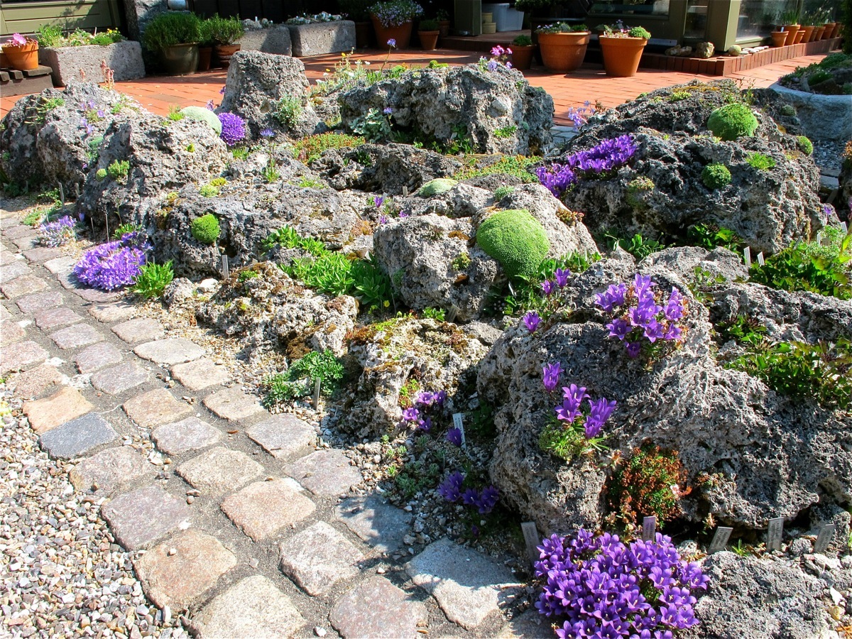 Рокарий в форме горки близок по стилю к альпинарию, но выбор растений для него более широк