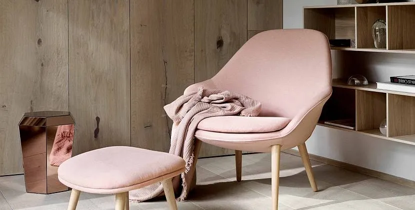 Интерьер пыльного розового цвета отлично дополняется с натуральным деревом, особенно если сделать пол светлого натурального оттенка.