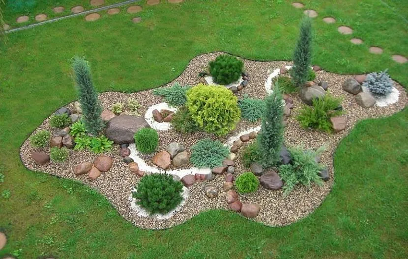 - Мелкая фракция щебня и гальки лучше сочетается с травами и цветами, крупные булыжники – с кустарниками и деревьями.