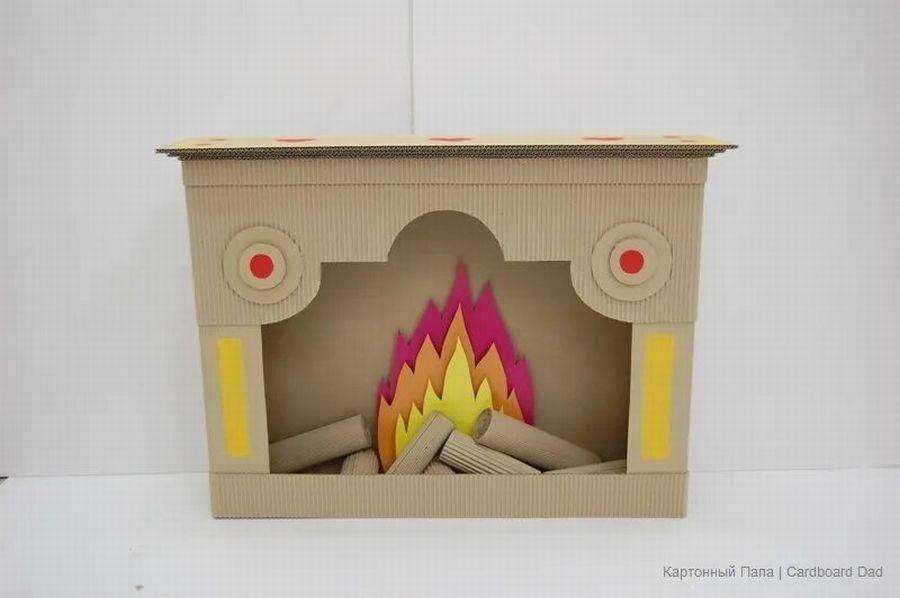 Для настоящих мастеров нет ничего невозможного! Вот этот сложный камин тоже сделан целиком из картона, и пламя в нем тоже картонное: