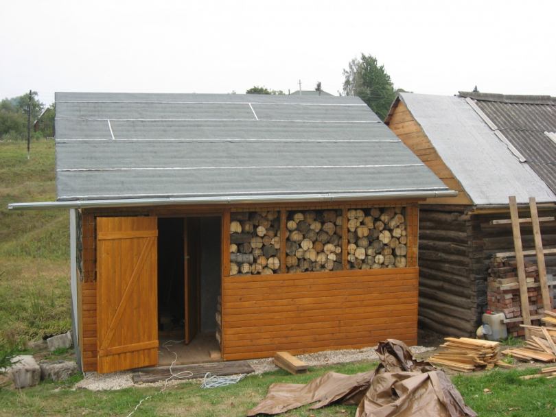 В какой-то мере их можно сравнивать с такими же гаражами. Единственное отличие — вместо ворот ставят дверь. Преимущество подобного способа изготовления — это свобода выбора размеров. Хотя такое возможно, если изготавливать «коробку» на месте (для больших конструкций есть ограничения по транспортировке).