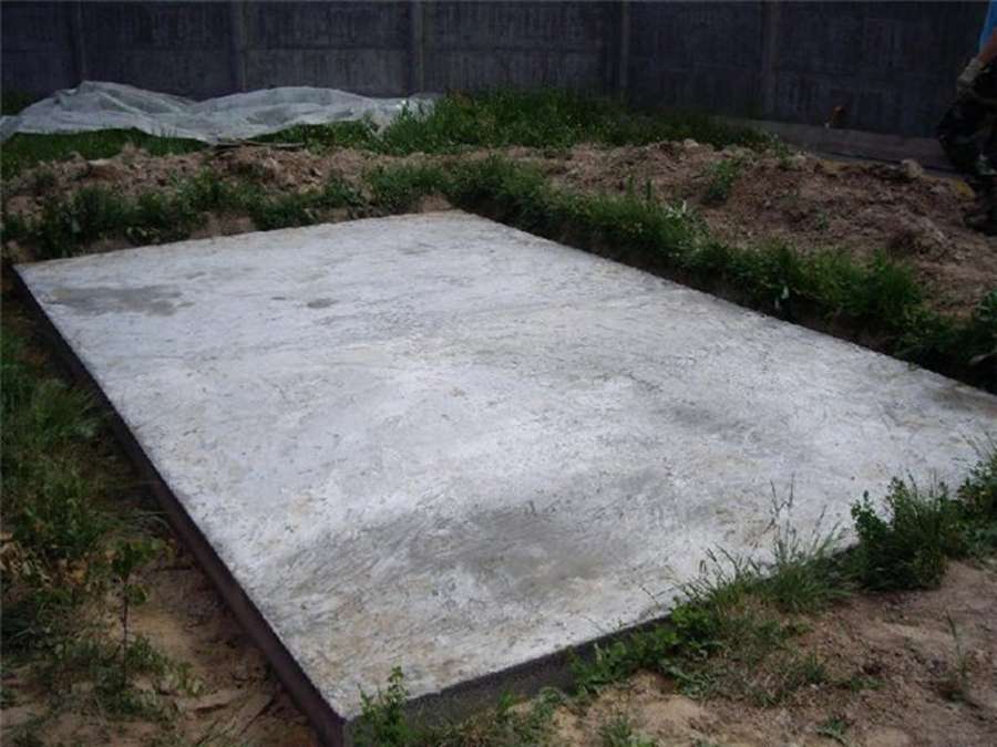 наиболее универсальный вариант. Она изготавливается из цементно-песчаного раствора, уложенного на песчаную подушку. Для дачного сарая толщины плиты достаточно 10 см, а толщины песчаной подушки 15-20 см. Для повышения прочности плиты применяют арматуру. Монолитную плиту легко изготовить без специального оборудования за 1 день. У плиты есть свои преимущества, отсутствует необходимость настила пола. Полом будет являться фундамент.