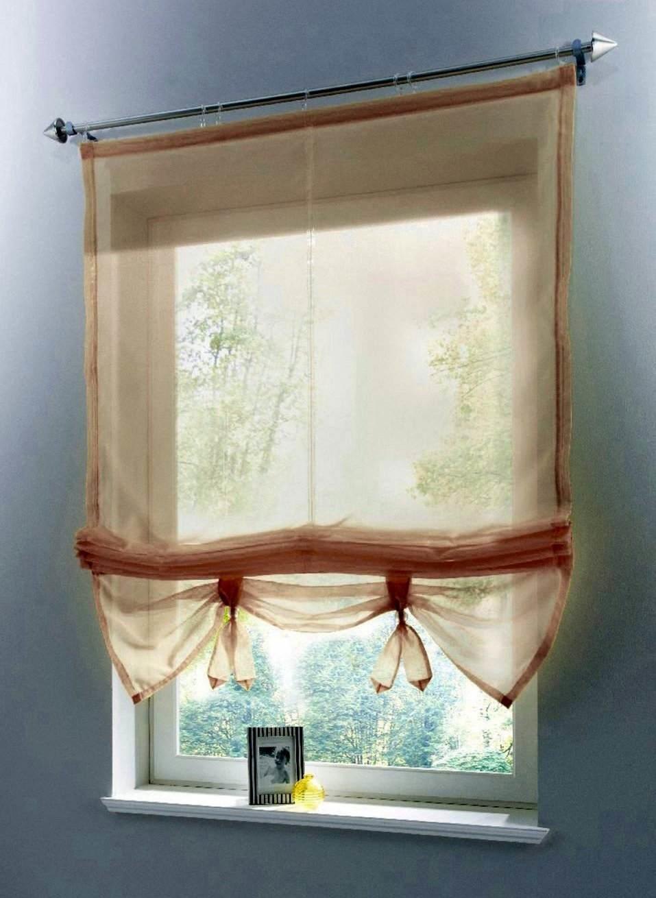 Например, они абсолютно не подходят для крошечных кухонь в малогабаритных квартирах. Для обрамления небольшого окна лучше использовать традиционные занавески или легкие лаконичные гардины, которые занимают мало места и при необходимости могут быть просто собраны или подвязаны.
