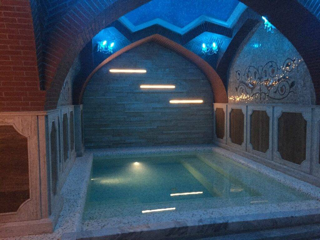 Эта купальня самая популярная у местных жителей. Второе ее наименование – Пестрая (или Голубая). Здание этой бани заметно отличается от остальных как снаружи, так и внутри. Это здание в арабском стиле, красиво оформленное мозаикой сине-голубых оттенков.