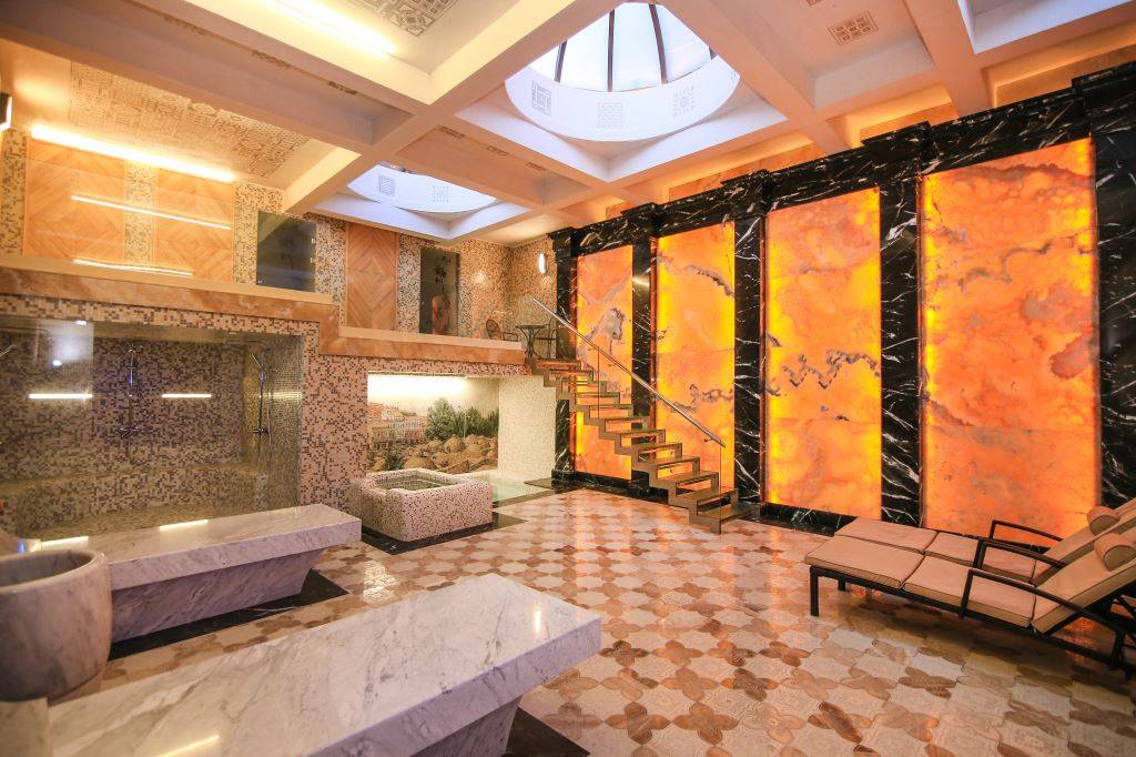 В этом помещении, представляющем собой единственный просторный номер с бассейном и сауной, сделан элитный ремонт. Очень тщательно следят за соблюдением гигиены, хотя известно, кто сама по себе вода с сероводородом обладает сильным обеззараживающим действием. Предоставляется множество дополнительных удобств.