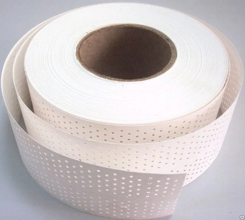 Бумажная с перфорацией. Перфорированная лента изготавливается из целлюлозы с добавлением стекловолокна, которое обеспечивает необходимую прочность изделия. Перфорация, нанесенная с клеящей стороны, нужна для лучшего сцепления с поверхностью.