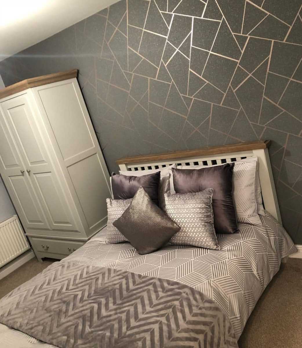 Популярность серого в последние пару лет объясняется его универсальностью. Он может влиять на настроение интерьера, самостоятельно создавать спокойную, расслабляющую обстановку, или же подчеркивать яркость остальных оттенков. Недаром из офисного варианта он перекочевал в дома и квартиры. На пике моды обои цвета «мокрый асфальт», «свинец», пепельный. Серебристые обои также оказались очень популярными (смотрите на фото ниже):