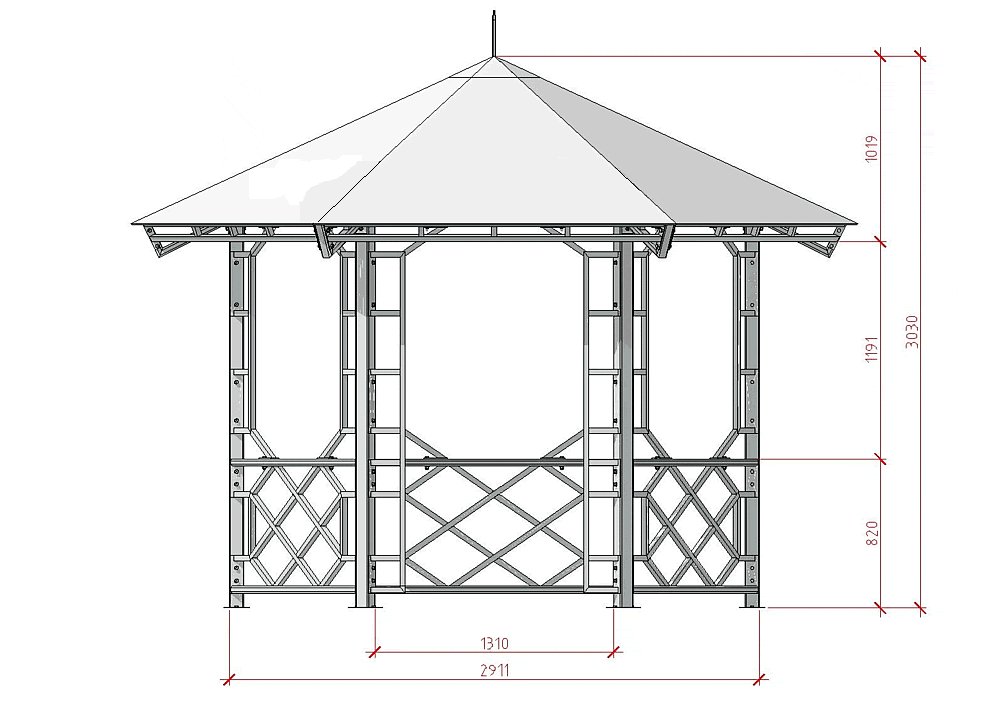Чертеж беседки с размерами должен содержать: