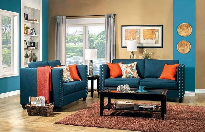 Синий и коричневый. При попытке создать гармонию синего и коричневого оттенка стараются использовать варианты палитры в одних тонах: темно-синий и тёмно-коричневый, кофейный и васильковый, морской и сосновый. Обычно гармония создается при помощи отделки стен и оформления мягкой мебели.