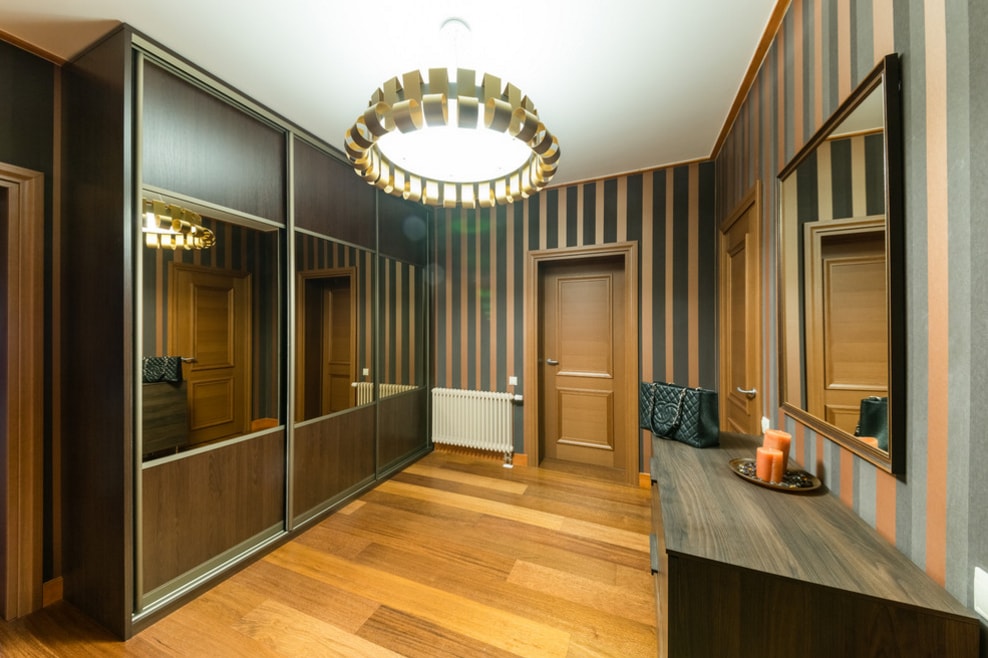 Если площадь прихожей довольно велика, то самый правильный вариант – поставить туда шкаф-купе. Дело в том, что благодаря его вместительности, вы с легкостью сможете поместить туда всю верхнюю одежду своей семьи. Поэтому в остальных комнатах будет намного проще организовать пространство.