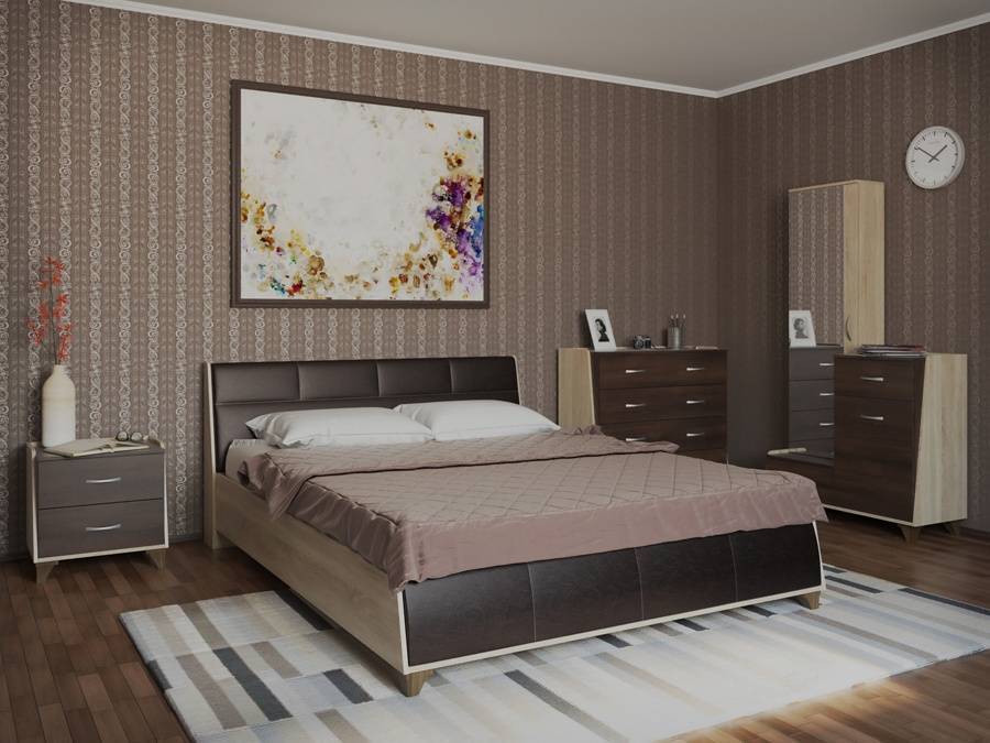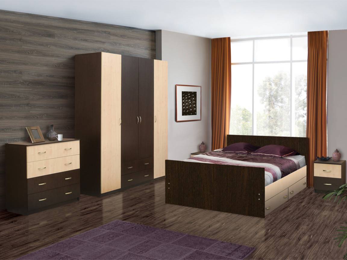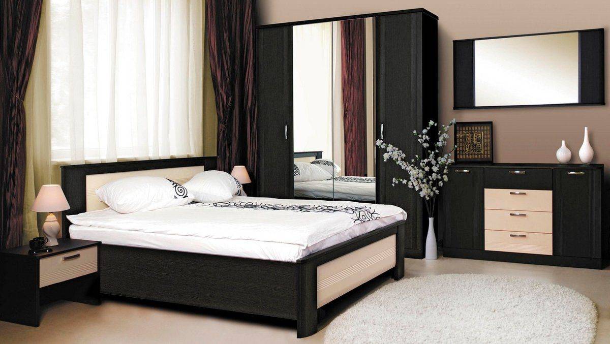 Несколько лет назад были популярны спальные гарнитуры с добавлением молочного оттенка. Сегодня они выглядят устарело, поэтому если хотите всю мебель в одном цвете и стиле — берите полностью темную. А чтобы нивелировать громоздкость, выбирайте минималистичный дизайн. Сделать атмосферу уютнее помогут светлые стены и пол, белый или кремовый декор, текстиль.