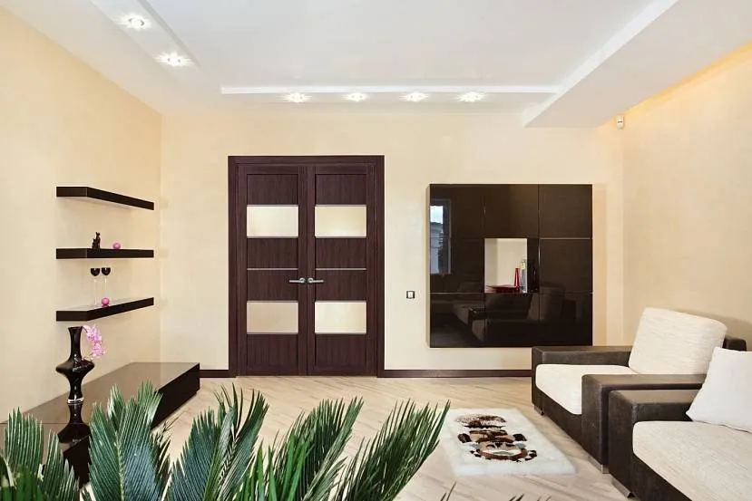 Как и все из ценной породы, двери для гостиной венге недешевы. Позволить себе такой массив может не каждый. Выручают современные технологии, предлагающие качественную имитацию из шпона. Так что люди со средним достатком могут чувствовать себя спокойно.