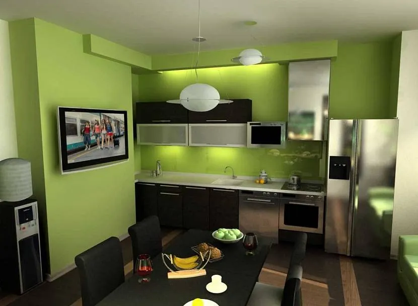 Салатовый и венге в интерьере кухниИсточник www.dizainvfoto.ru