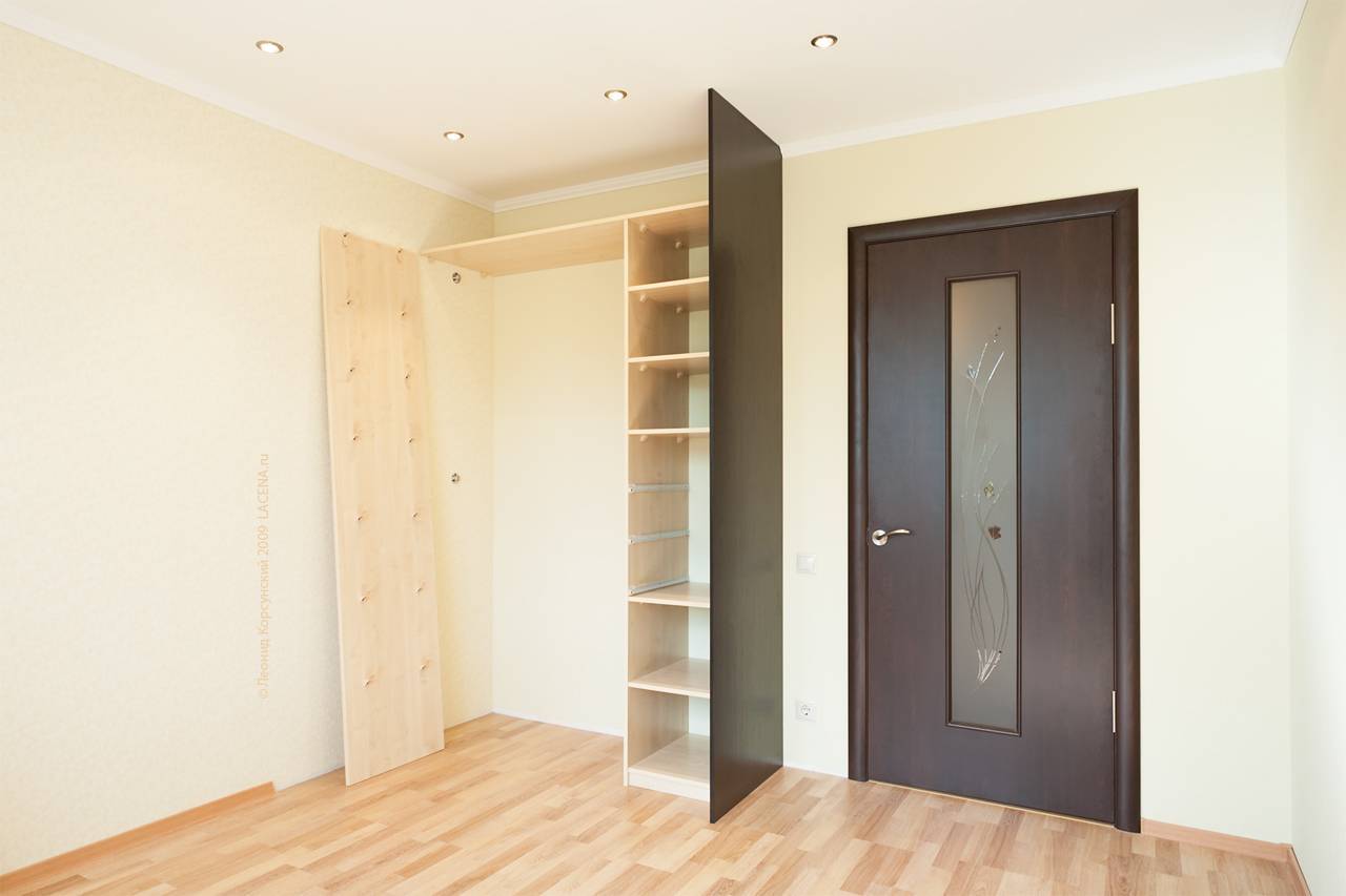 Если у вас маленькое помещение, подумайте несколько раз, прежде чем заказывать трапециевидный или треугольный угловой шкаф. Такие шкафы занимают очень много места, при этом выигранное внутреннее пространство шкафа никак не решить функционально.
