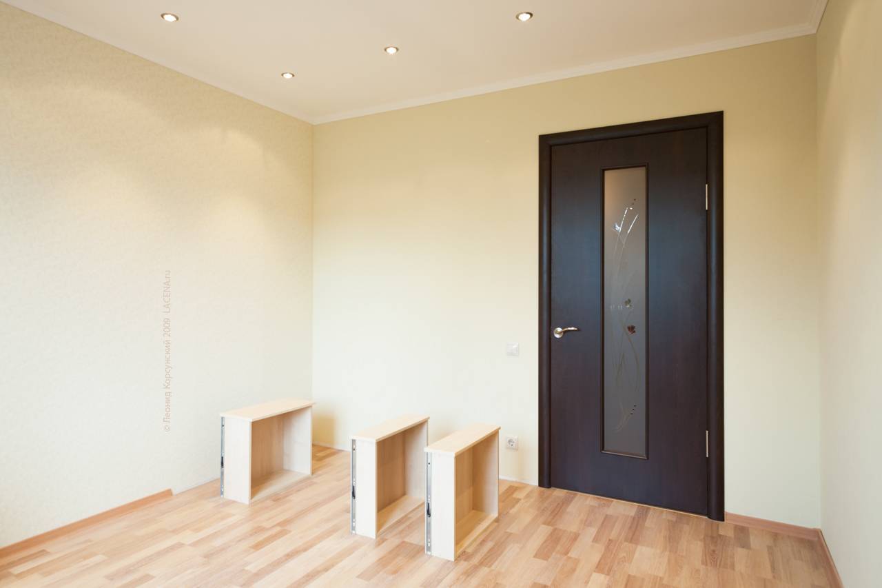 У встроенных шкафов-купе верхний рельс дверей-купе будет крепиться прямо к потолку. Если вы планируете делать натяжной потолок, подумайте заранее о закладной в этом месте, потому что повесить что-либо на полотно натяжного потолка невозможно. Нижний рельс, логично, будет крепиться к полу. Подумайте о нагрузке на пол. Возможно, двери шкафа-купе получатся довольно тяжелыми, к примеру, если вы выберите наполнение из стекла. Неграмотно сделанная подложка под напольное покрытие рискует провиснуть — учтите это еще на этапе ремонта.