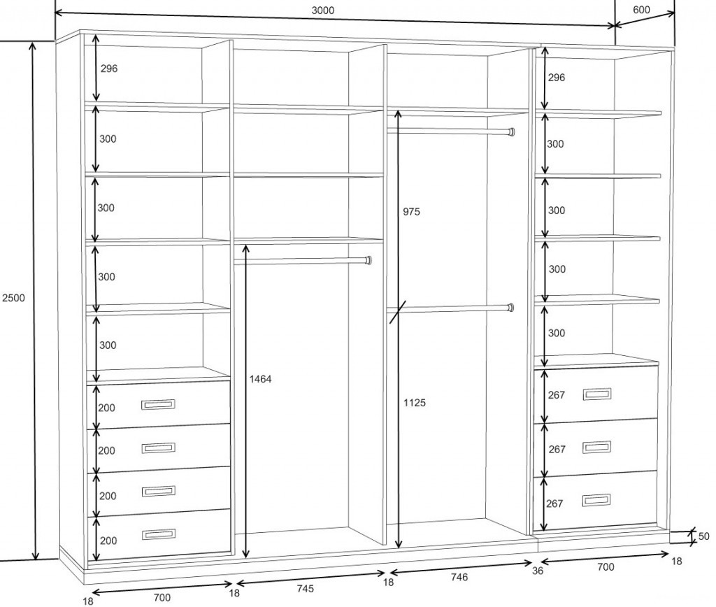После того как клиент выбрал материал шкафа, уточнил вид его конструкции, он должен определиться с размерами