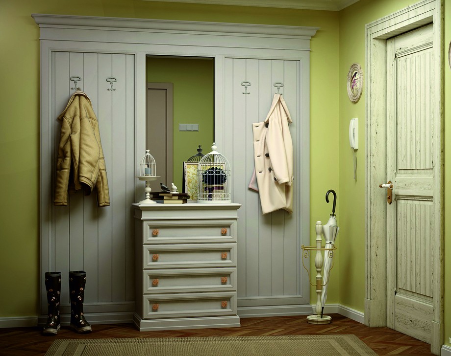 - Полку для головных уборов удобнее всего разместить над зеркалом.