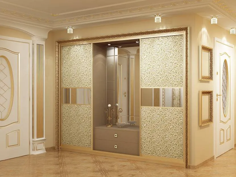 Что касается декора, то здесь практически нет границ. Все самые шикарные и благородные материалы дизайнер может использовать в качестве оформления классического шкафа: