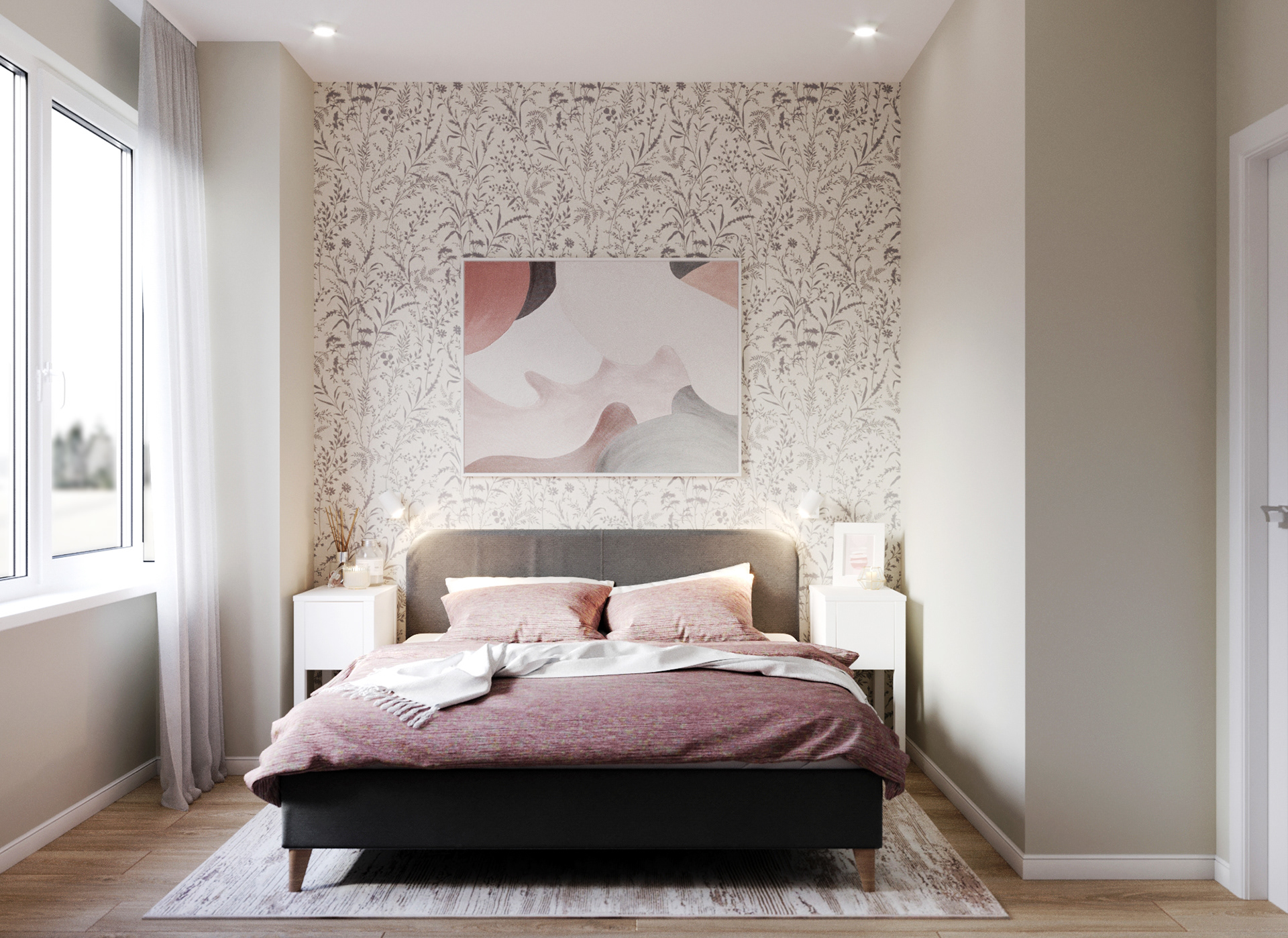 Чтобы избежать создания скучного дизайна, выберите обои с ненавязчивыми орнаментами: небольшими цветочными узорами, ровными линиями или волнами.