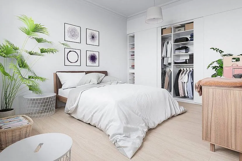 За счет преобладающей светлой палитры, скандинавская стилистика идеально вписывается в малогабаритную спальню.