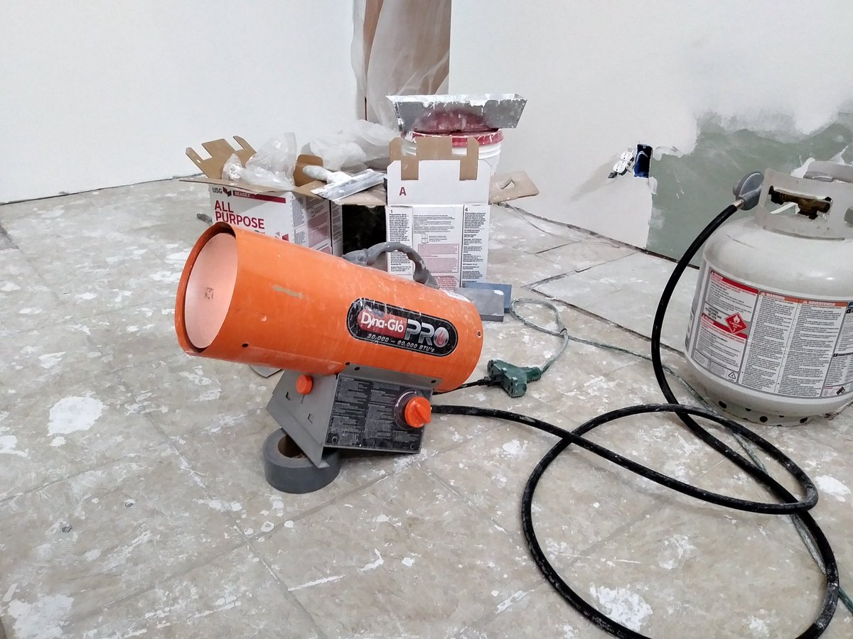 Низкие температуры не способствуют засыханию праймера. Для ускорения рекомендуется воспользоваться тепловой пушкой. Это очень удобное и простое в применении приспособление, обладающее большой мобильностью. Мощность такой пушки начинается от 2 кВт, этого будет достаточно для заданной цели. При работе с таким устройством не стоит забывать о технике безопасности, а также не направлять пушку на какой-то конкретный участок, ее надо размещать на удалённом расстоянии от зоны. После использования пушки стоит проветрить помещение, включать оборудование на максимальную мощность не следует, достаточно включить на +30 градусов.