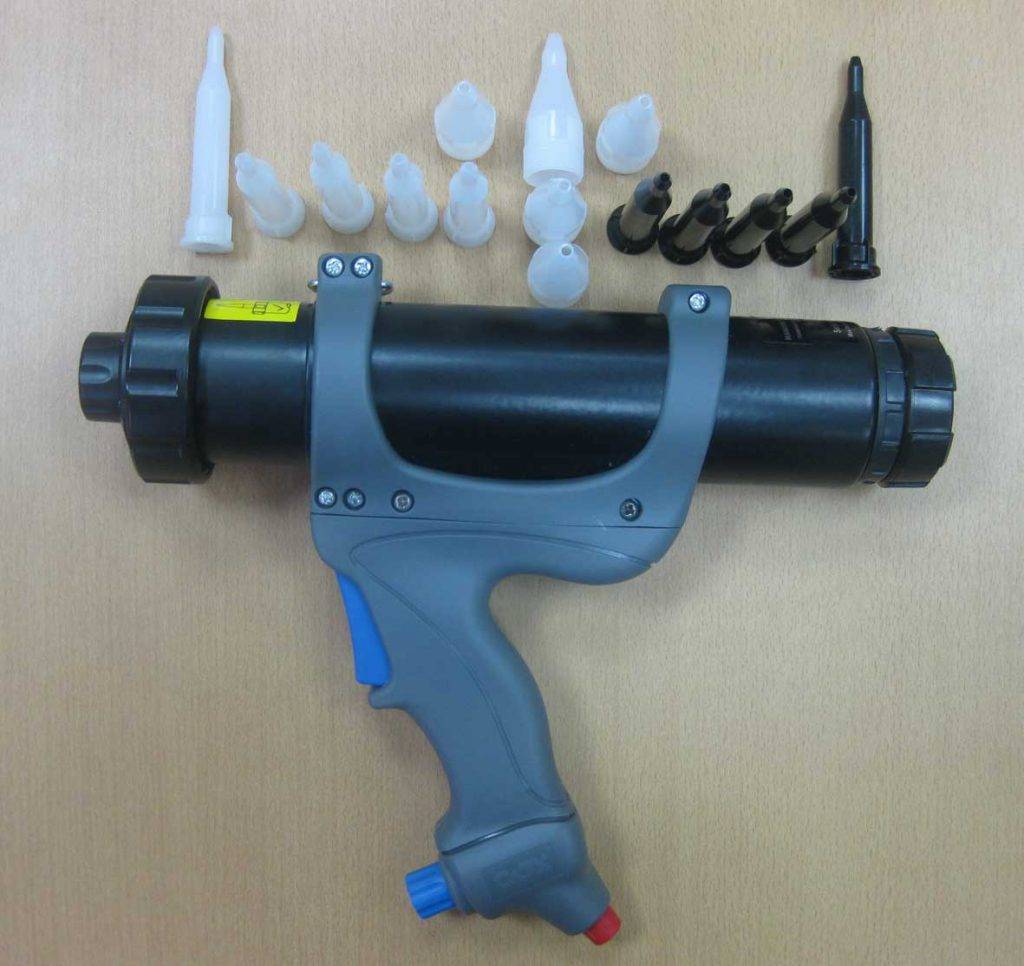 Клей-герметик использовать может даже новичок. Для этого нужен специальный пистолет, в который вставляется тюбик с силиконом. На ее носик надевает специальный дозатор, из которого порционно подается материал, позволяя его нанести на поверхность нужным слоем.