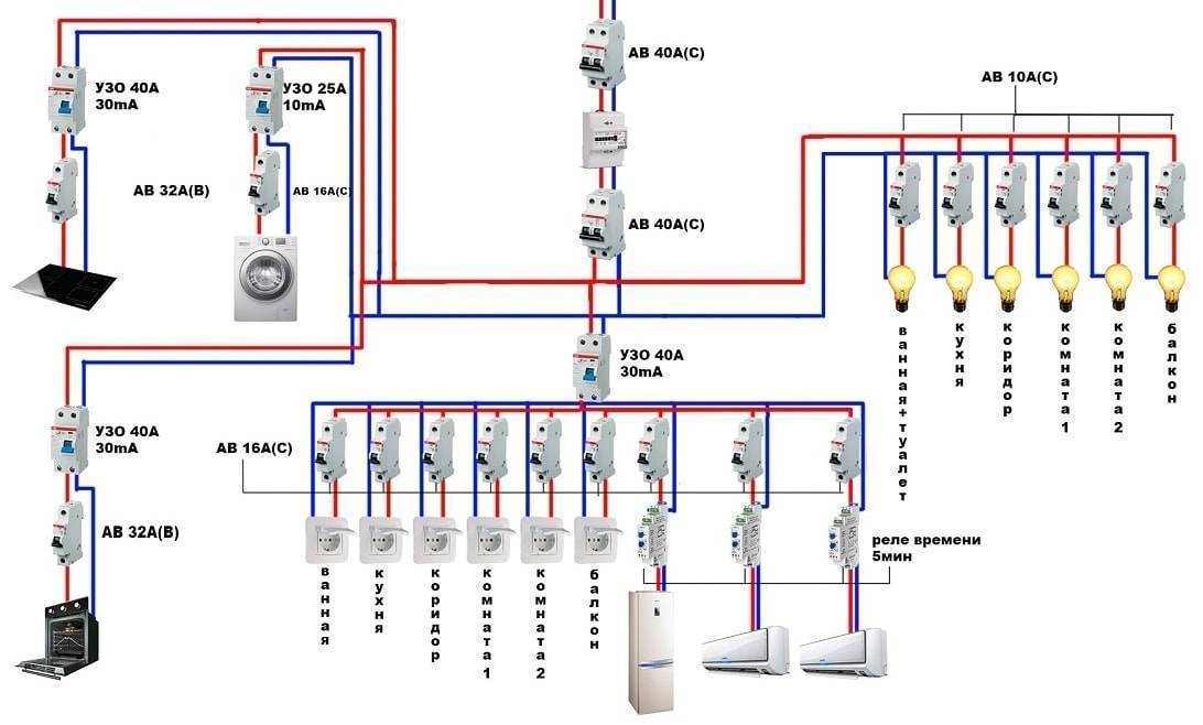 - К дому или квартире подходят три фазы. Если вы не знаете, как развести три фазы по дому, где поставить автоматы, как сделать проходные выключатели – лучше воспользоваться услугами специалиста. От вас лишь потребуется расписать (начертить), где вы хотите видеть розетки и какое электрооборудование собираетесь использовать (например, для варочной панели может потребоваться вести отдельную фазу проводом сечением 4 мм2 или больше).