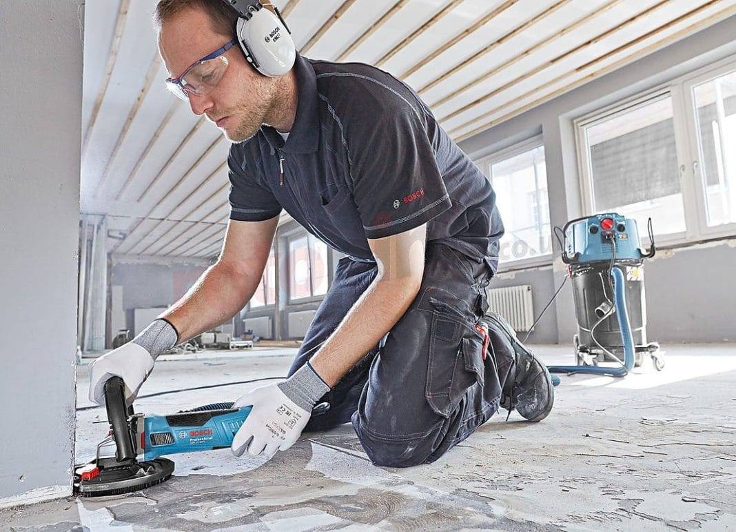 Эконом вариант шлифовальной машины — болгарка. Конечно, этот вариант заберет больше сил и времени, но и тут имеются плюсы — болгарка зайдет в труднодоступные места. Чтобы отшлифовать пол болгаркой, вам понадобится 2 насадки — абразивный диск и алмазная чаша. Чем длиннее радиус круга, тем больше возможностей. Хочу предупредить, будьте максимально осторожны и предельно бдительны, этот способ травмоопасен! А еще лучше — обратитесь к специалистам.