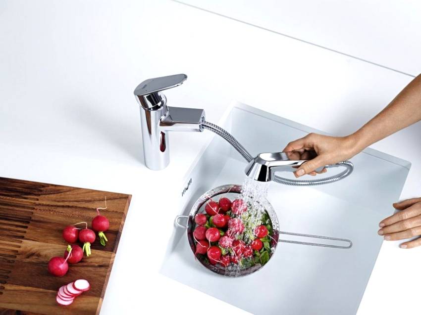 Форма и дизайн кухонных смесителей с выдвижной лейкой