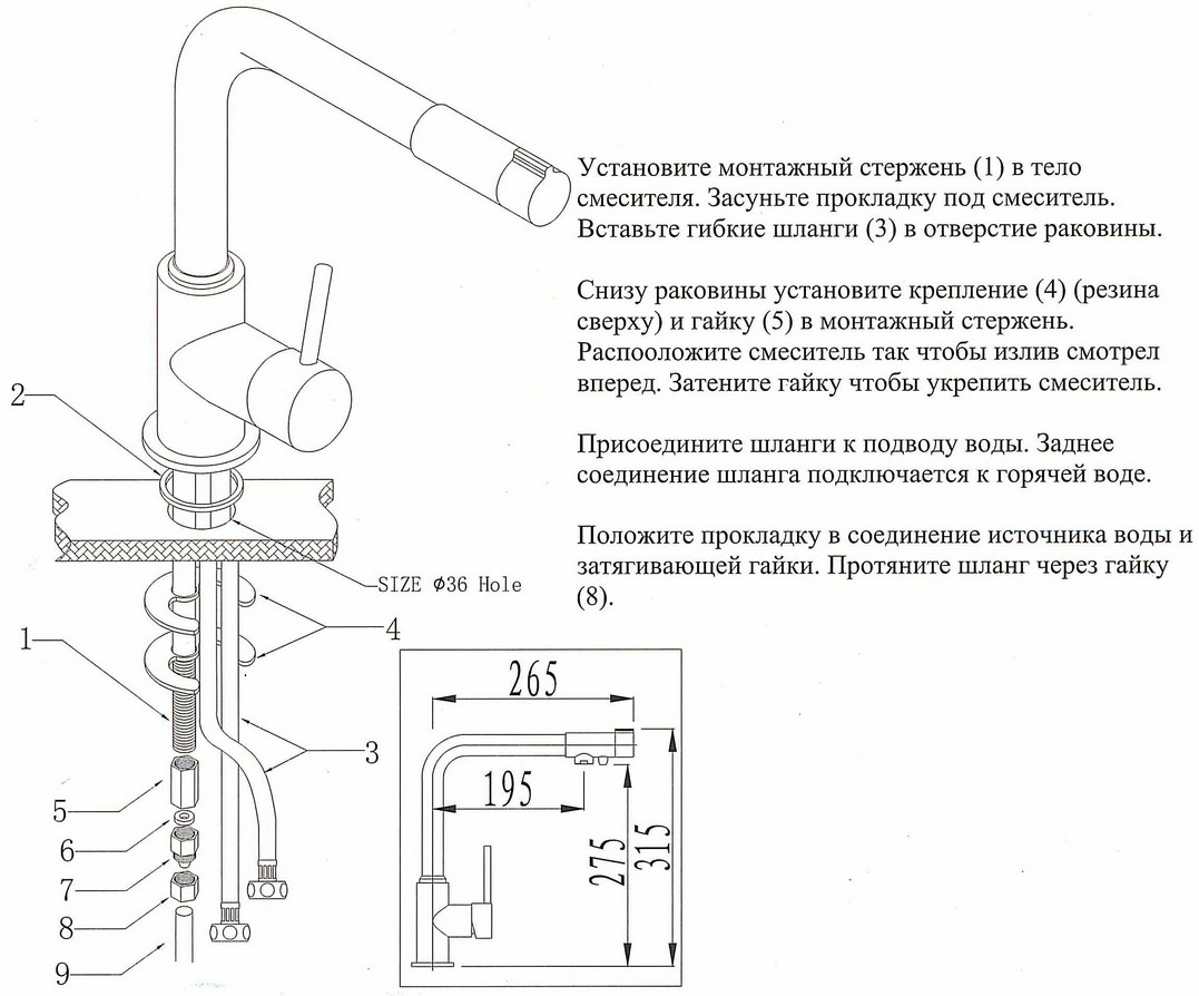 Подготовьте аксессуар: достаньте инструкцию производителя, рассмотрите и разложите сборные детали смесителя.