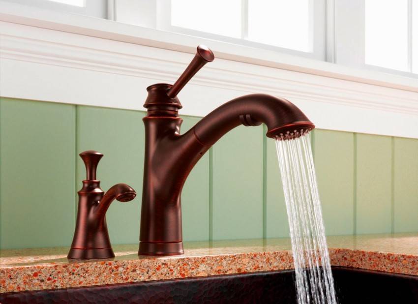 Самый продаваемый – первый вид, однорычажный. Популярен он, потому что имеет несложную конструкцию и при этом удобен в эксплуатации. Самые активные хозяйки оценят то, что открыть кран можно одним пальцем и легко и просто задать нужную температуру воды. Это важные моменты для тех, кто постоянно занимается уборкой, приготовлением пищи. Есть ещё одно преимущество однорычажного смесителя перед двухвентильным – это экономичность, когда нет необходимости постоянно настраивать температуру воды, поворачивая рукоятки. Двухвентильные смесители – это вид, который сейчас гораздо менее популярен, чем раньше, при этом, если у вас кухня в ретростиле, то такой вид отлично подчеркнёт дизайн помещения и впишется в общую концепцию.