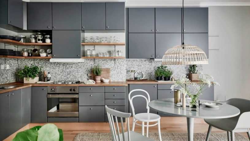 При покупке мебели учитывают площадь, конфигурацию кухни. От этого зависит формат, расположение гарнитура. Модной вариацией считается модульный «конструктор» без верхних шкафов. Разные модели подобных изделий в широком ассортименте представлены среди серых кухонь ИКЕА.