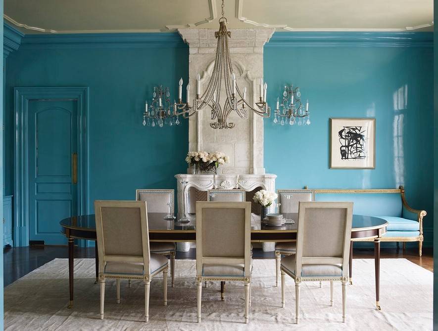 - 60 % — доминирующий цвет. Самый простой вариант — окрасить в главный тон стены и выбрать оттенок из нейтральной палитры. Можно выбирать и яркие краски, но только при условии, что все остальное будет нейтральных тонов.